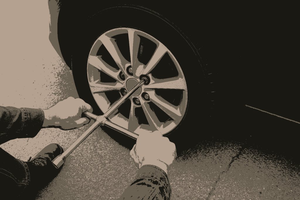 Park on a flat, level surface and engage the parking brake. Loosen the lug nuts on all four wheels while the car is still on the ground.