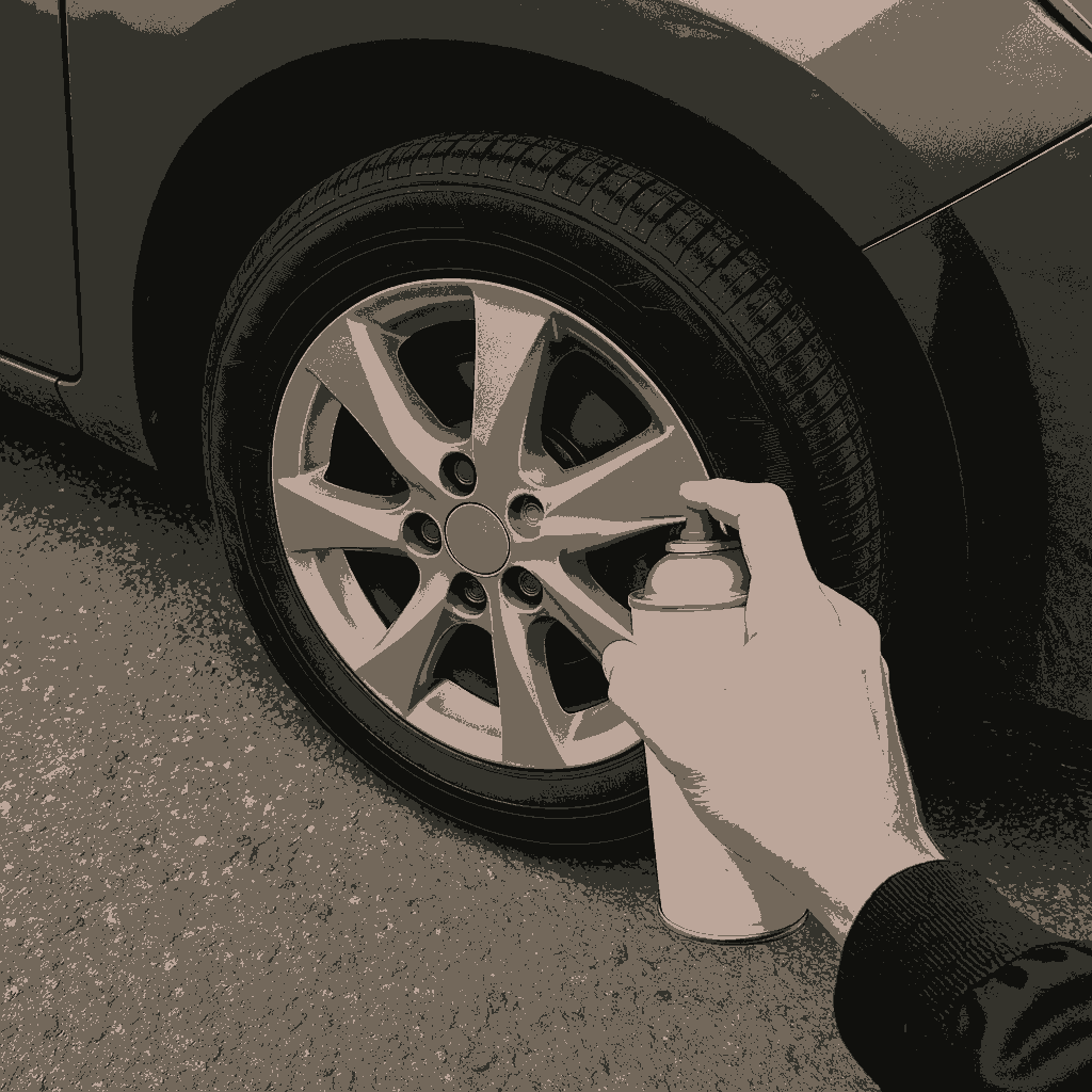 Use a color-matched wheel paint to restore the original finish. You can usually find paint codes from the vehicle manufacturer or use a universal silver or black finish if exact matching isn’t critical. Apply three to four light coats, allowing proper drying time between each pass. Hold the can 6 to 8 inches away for even coverage, and avoid heavy spraying to prevent runs.